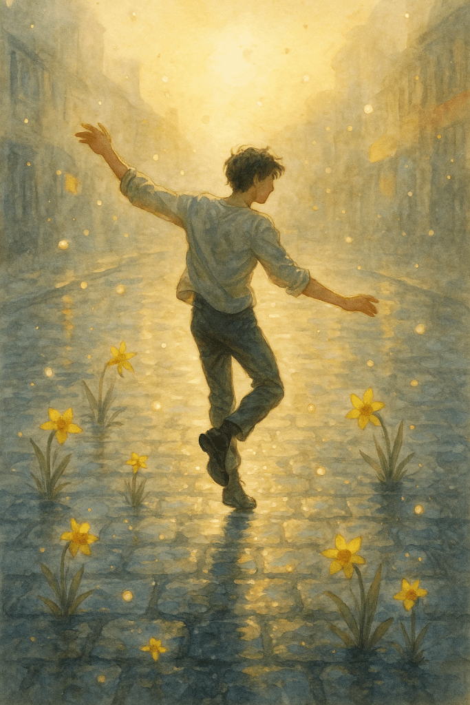 He’s dressed in the silvery glow of petrichor,